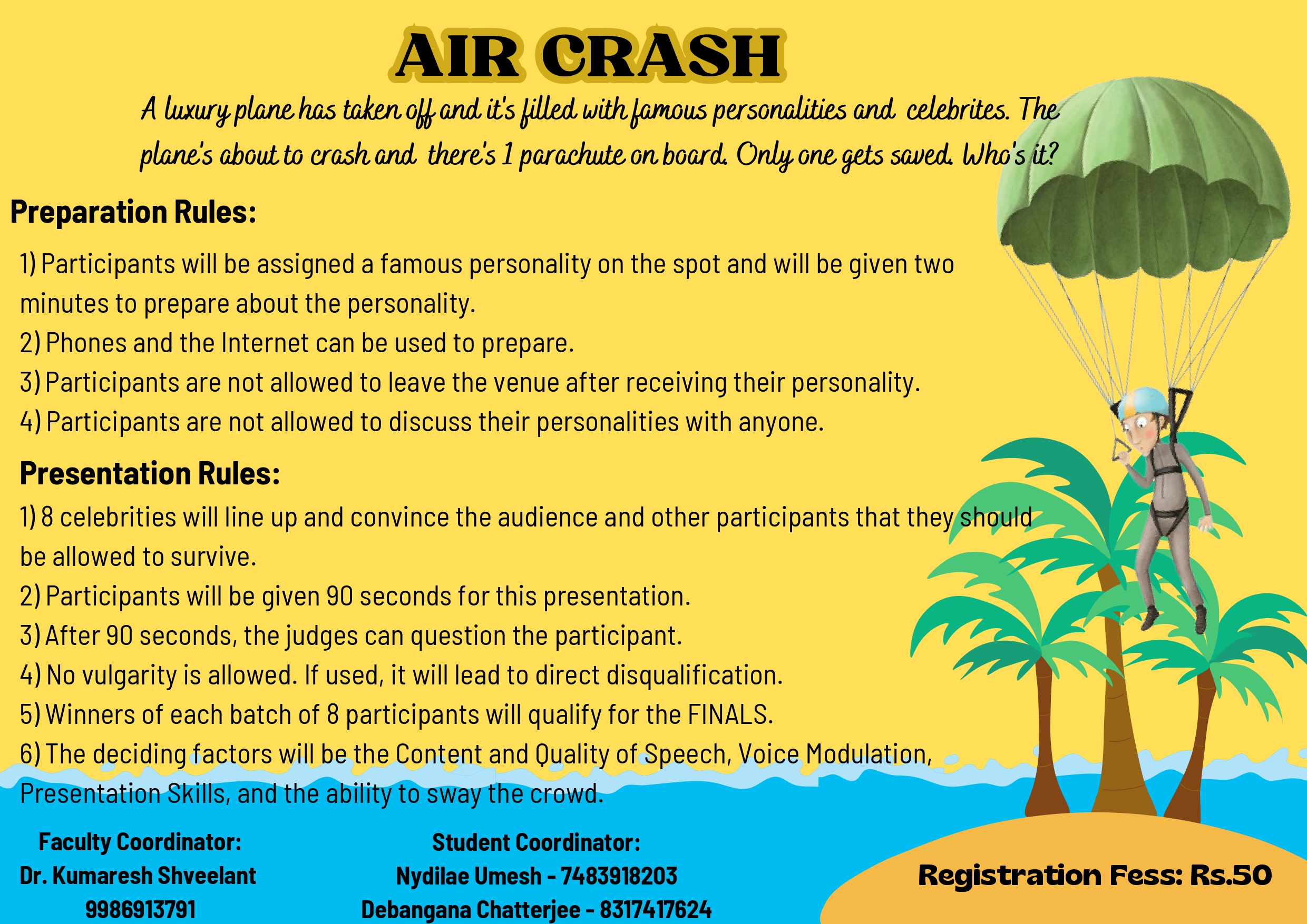 A luxury plane has taken off from Bangalore at 1100 hours. It is bound to reach Shimla at 1400 hours. It is filled with famous personalities, people we talk about every day. Cricketers, Actors, Musicians, Stock Market Giants and influential personalities. Alas! The plane has a bird strike and has lost the use of both its engines. There is only ONE parachute on board. Meaning, only ONE celebrity can be saved. But, who do we save?